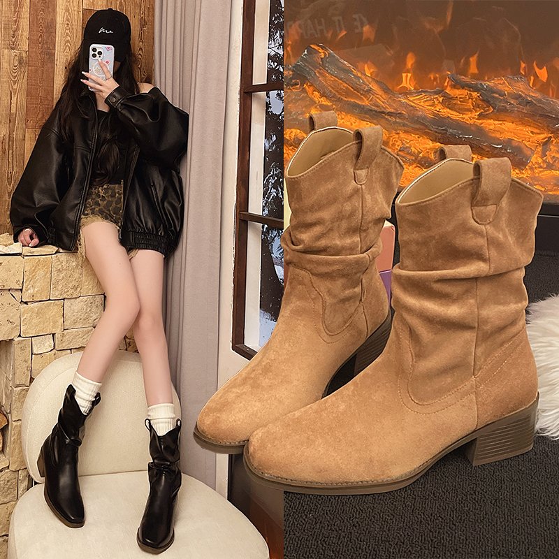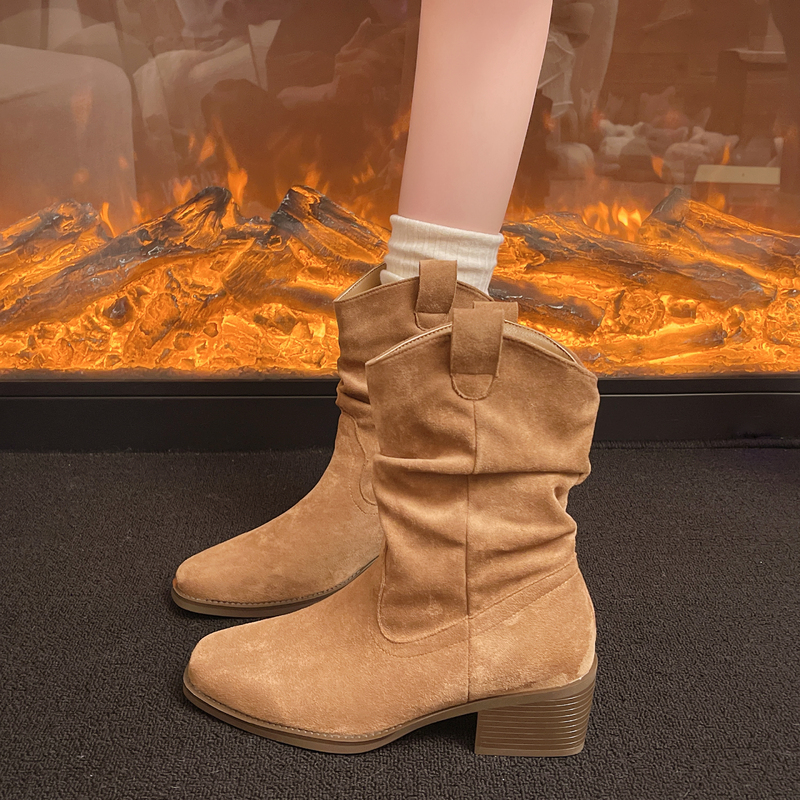 女靴子靴子韩版潮时尚保暖防滑短靴圆头粗跟
