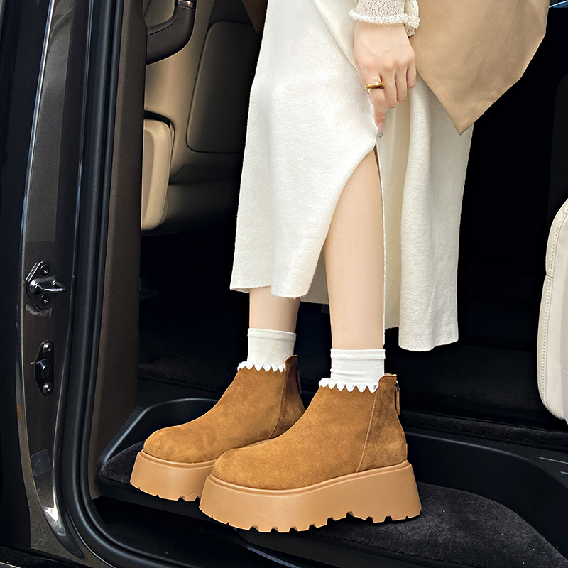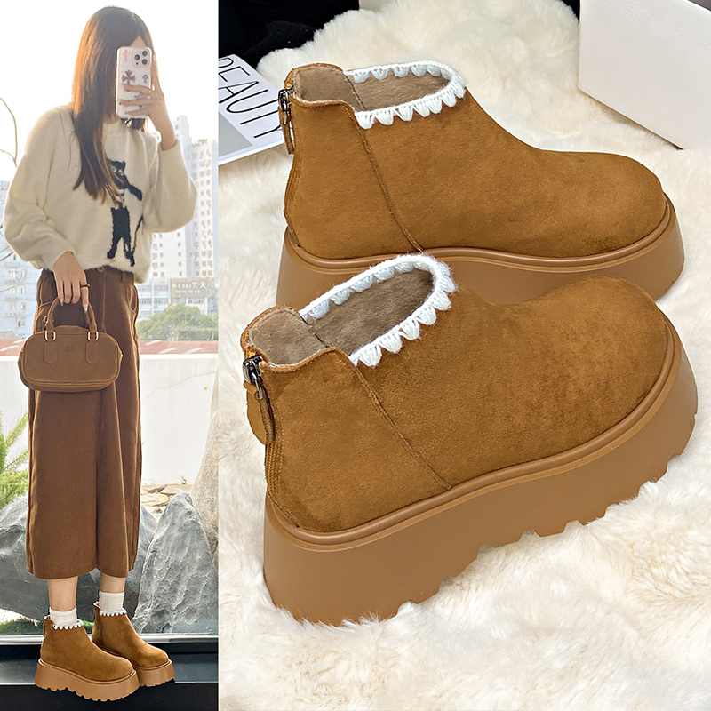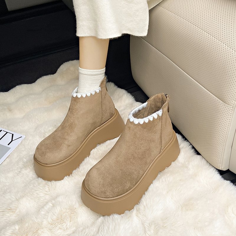 女靴子靴子韩版潮时尚保暖防滑短靴圆头粗跟
