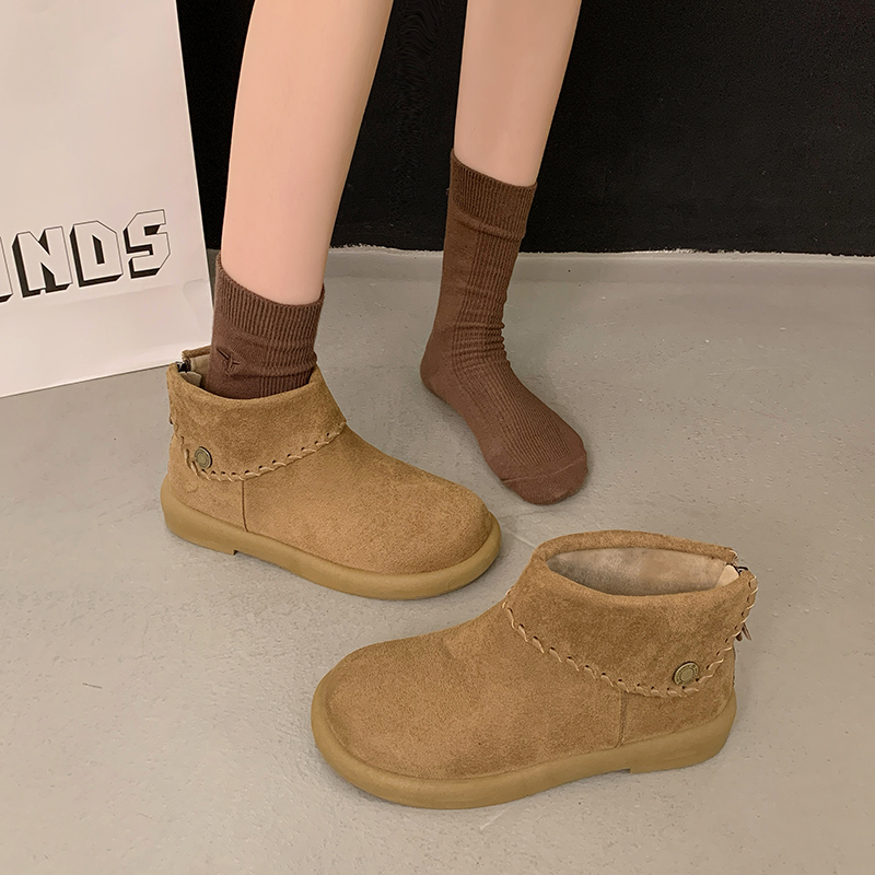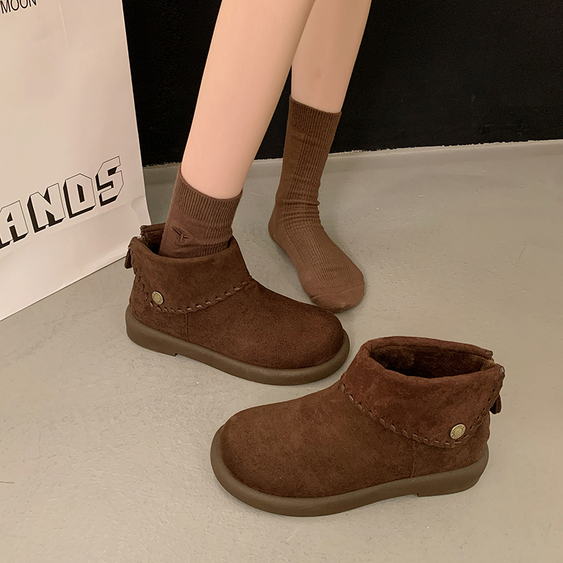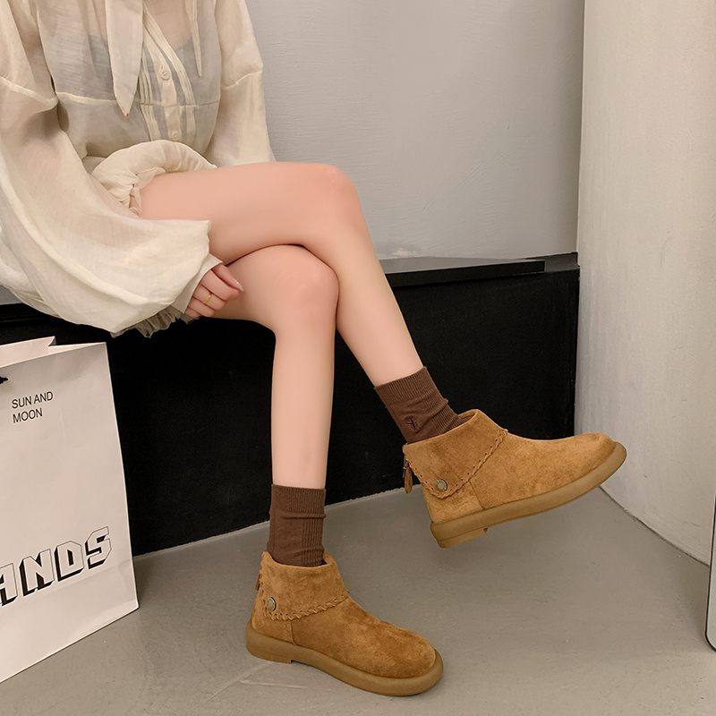 女靴子靴子韩版潮时尚保暖防滑短靴圆头粗跟