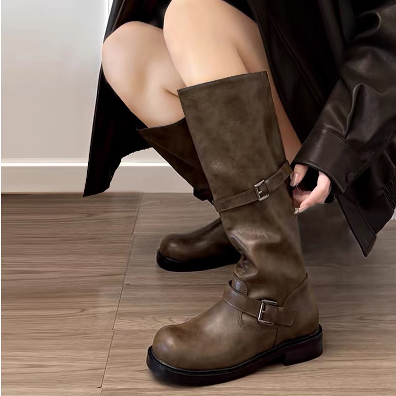 女靴子靴子韩版潮时尚保暖防滑长靴圆头粗跟