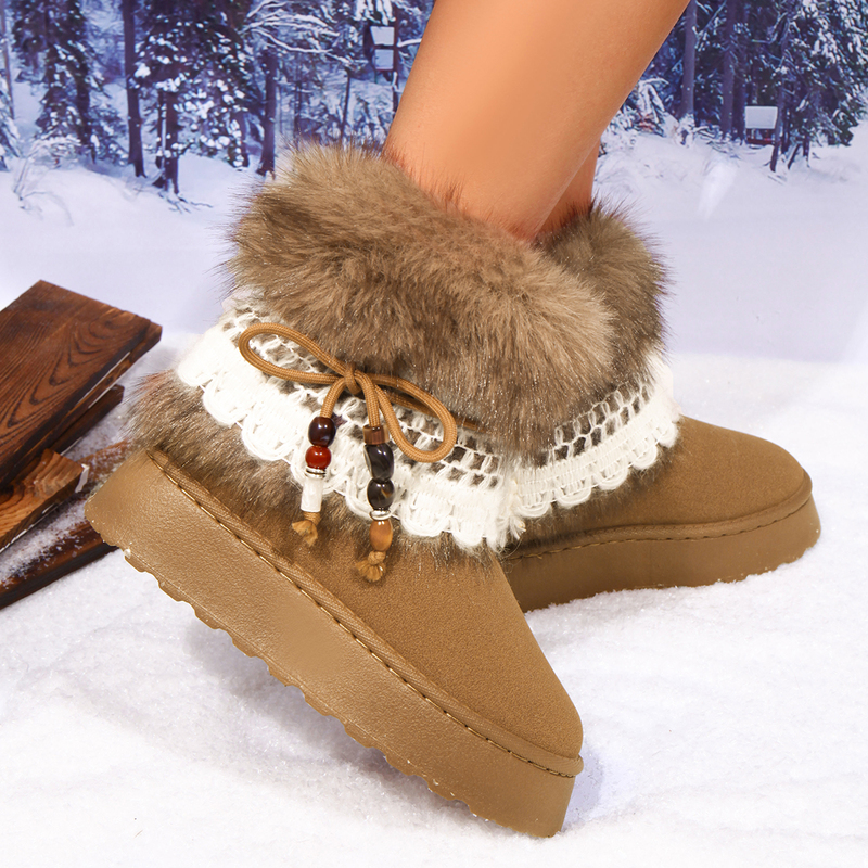 女靴子靴子韩版潮时尚保暖防滑绒面短靴圆头