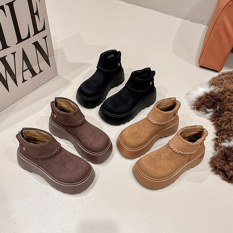 女靴子靴子韩版潮时尚保暖防滑短靴圆头粗跟
