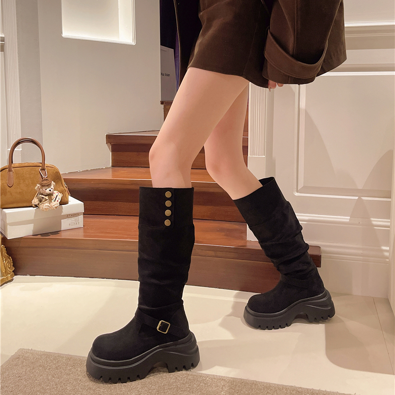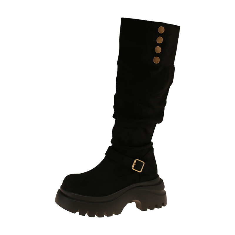 女靴子靴子韩版潮时尚保暖防滑长靴圆头粗跟