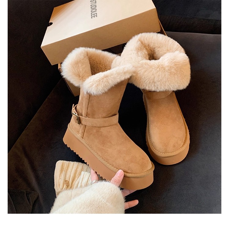 女靴子靴子韩版潮时尚保暖防滑绒面短靴圆头