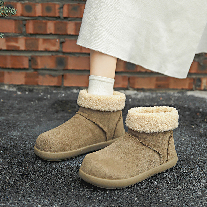 女靴子靴子韩版潮时尚保暖防滑绒面短靴圆头