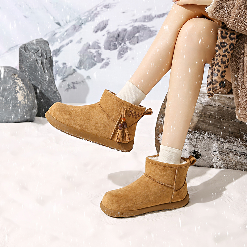 女靴子靴子韩版潮时尚保暖防滑绒面短靴圆头