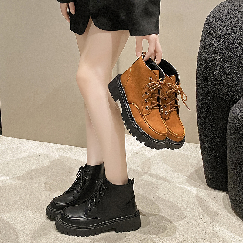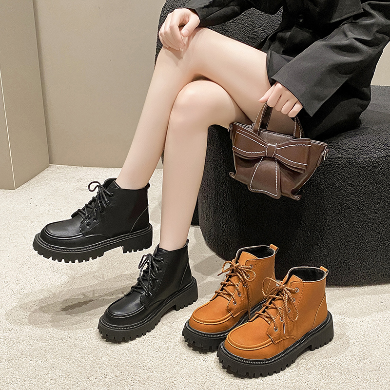 女靴子靴子韩版潮时尚保暖防滑森女短靴圆头粗跟