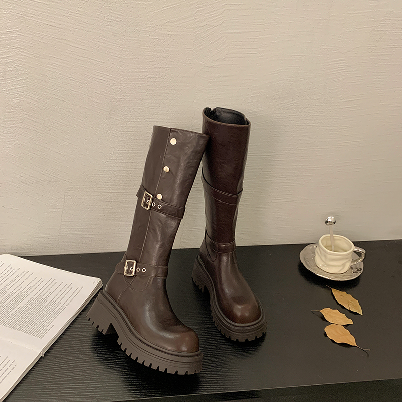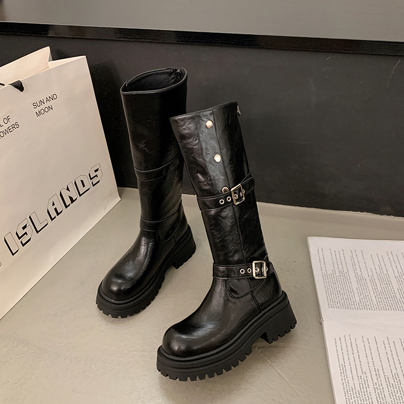 女靴子靴子韩版潮时尚保暖防滑长靴圆头粗跟