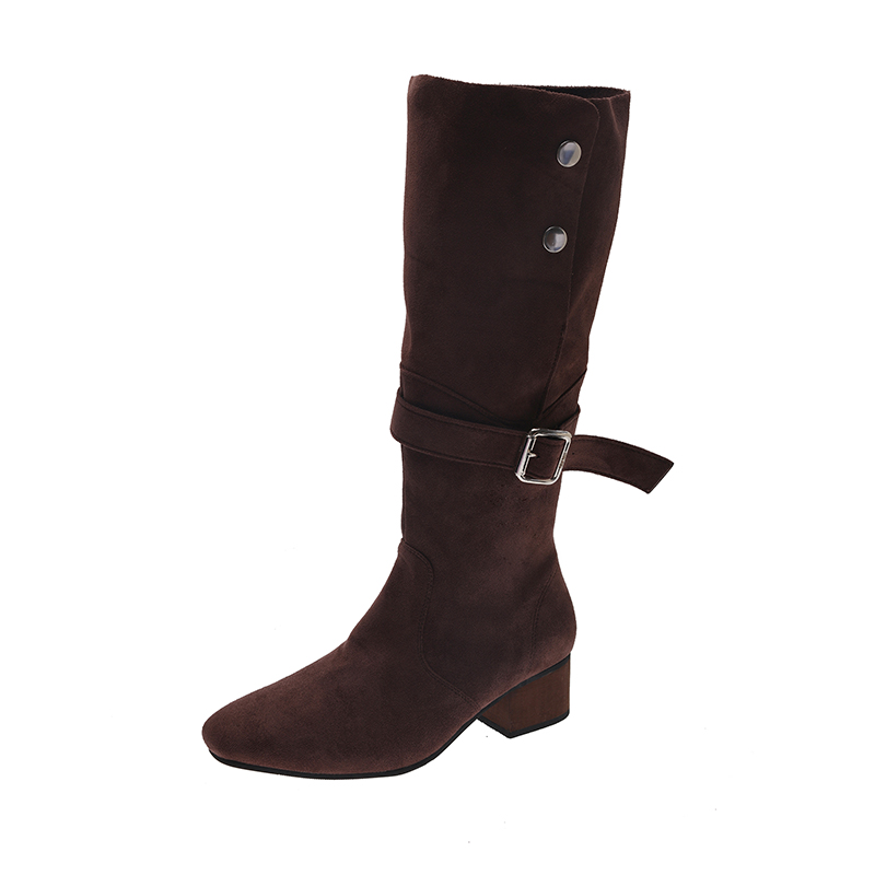 女靴子靴子韩版潮时尚保暖防滑长靴圆头粗跟