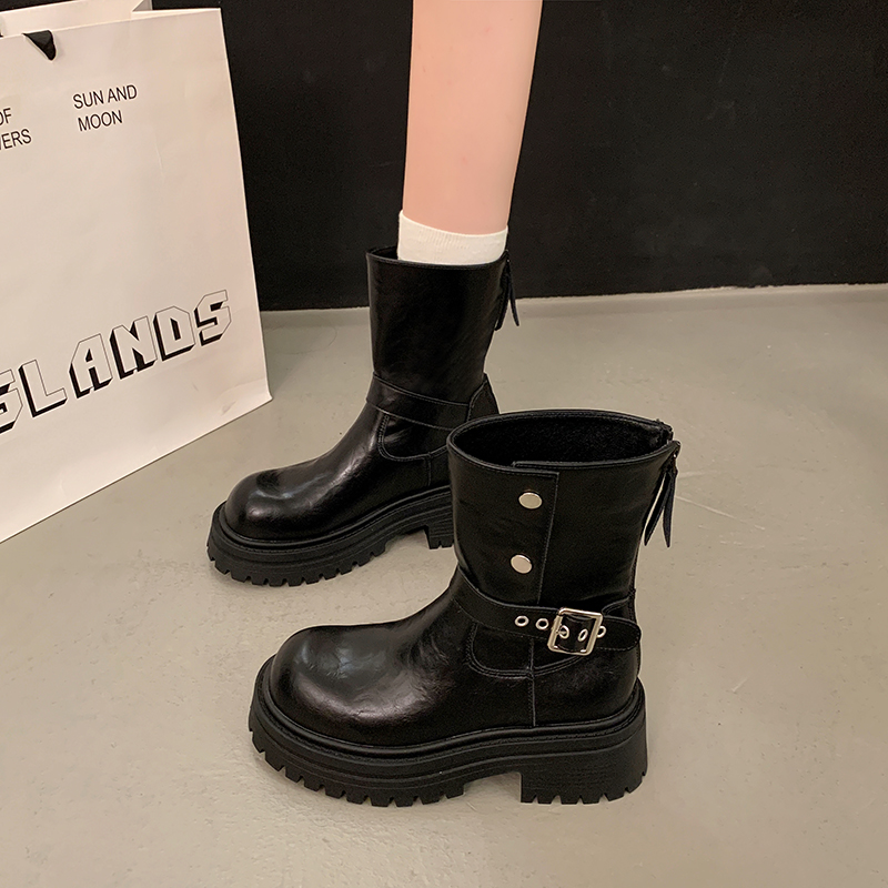 女靴子靴子韩版潮时尚保暖防滑短靴圆头粗跟