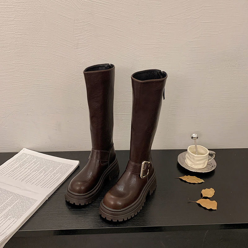 女靴子靴子韩版潮时尚保暖防滑长靴圆头粗跟