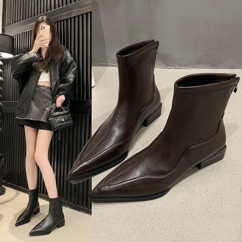 女靴子靴子韩版潮时尚保暖防滑短靴圆头粗跟