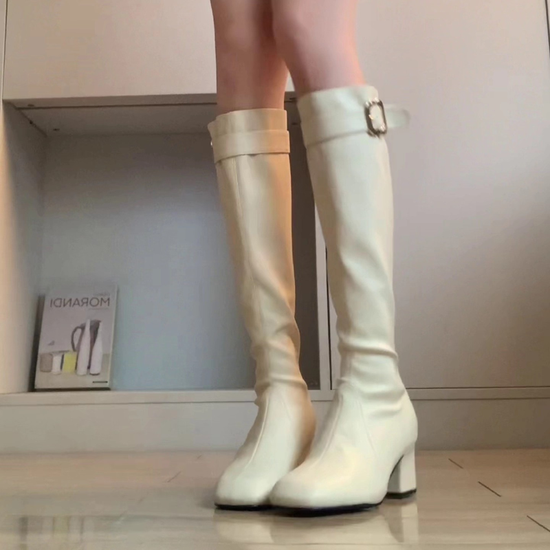 女靴子靴子韩版潮时尚保暖防滑长靴圆头粗跟