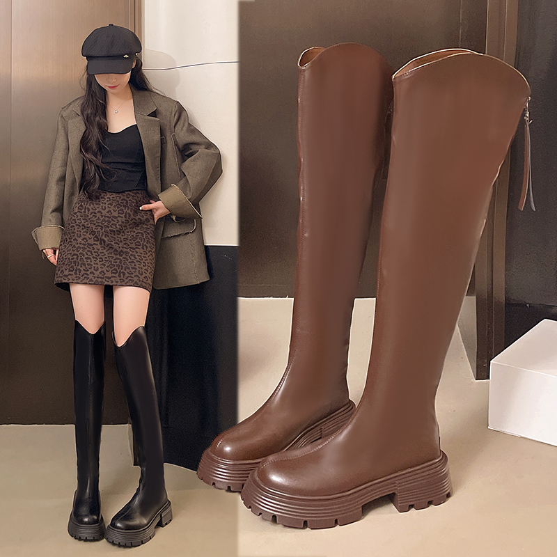 女靴子靴子韩版潮时尚保暖防滑长靴圆头粗跟