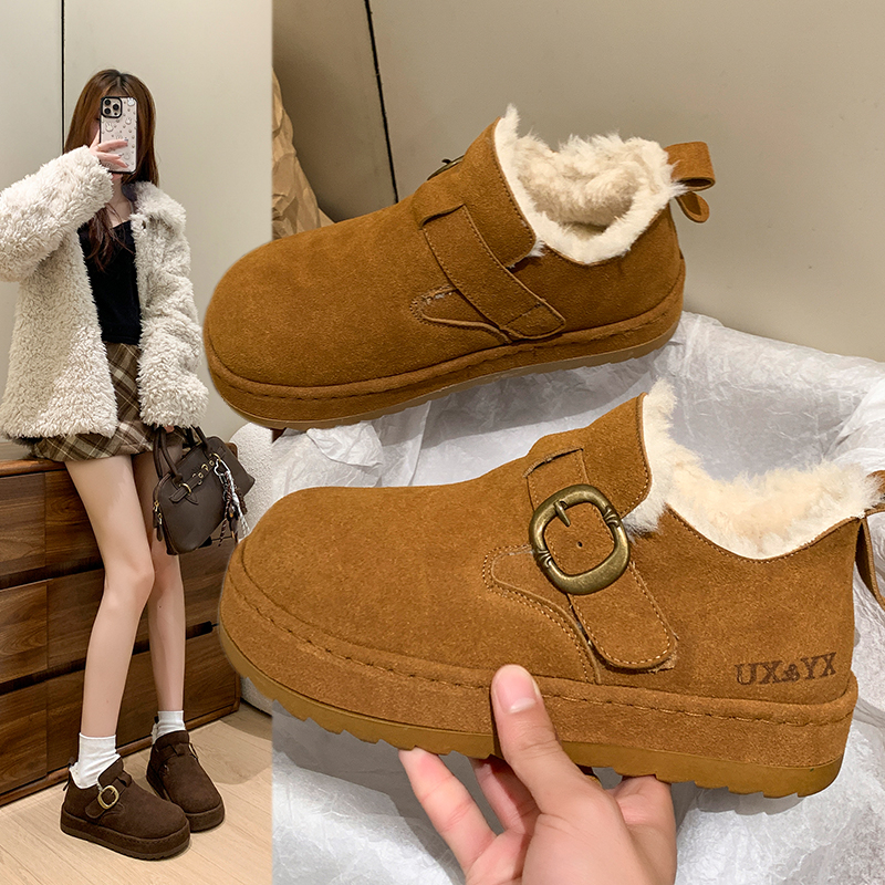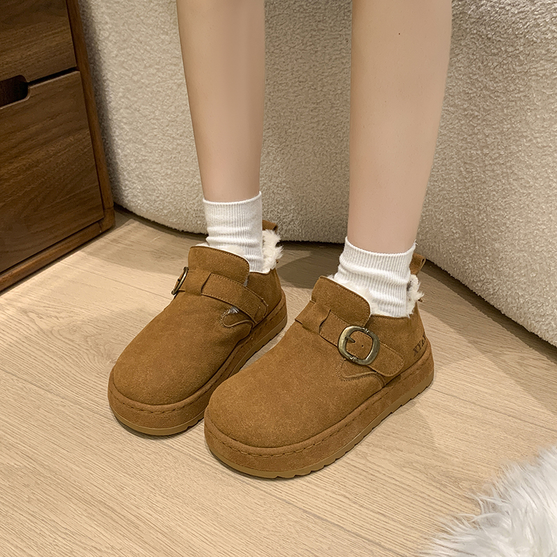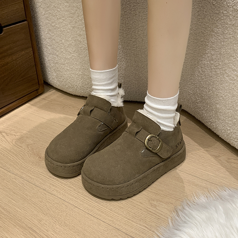 女靴子靴子韩版潮时尚保暖防滑绒面短靴圆头