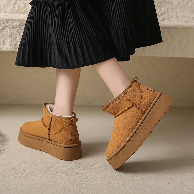 女靴子靴子韩版潮时尚保暖防滑绒面短靴圆头
