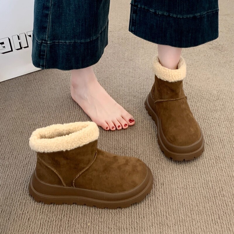 女靴子靴子韩版潮时尚保暖防滑绒面短靴圆头