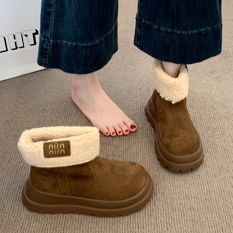 女靴子靴子韩版潮时尚保暖防滑绒面短靴圆头