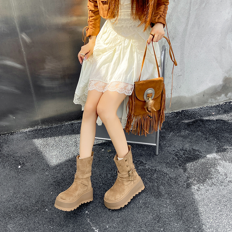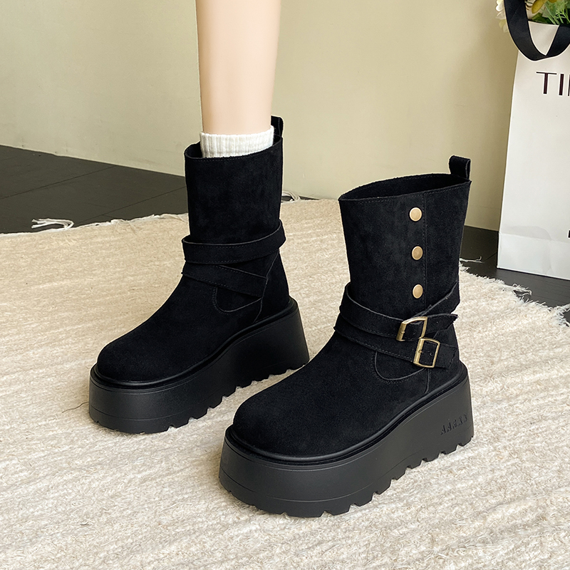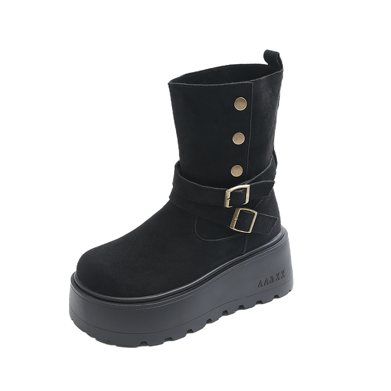 女靴子靴子韩版潮时尚保暖防滑短靴圆头粗跟