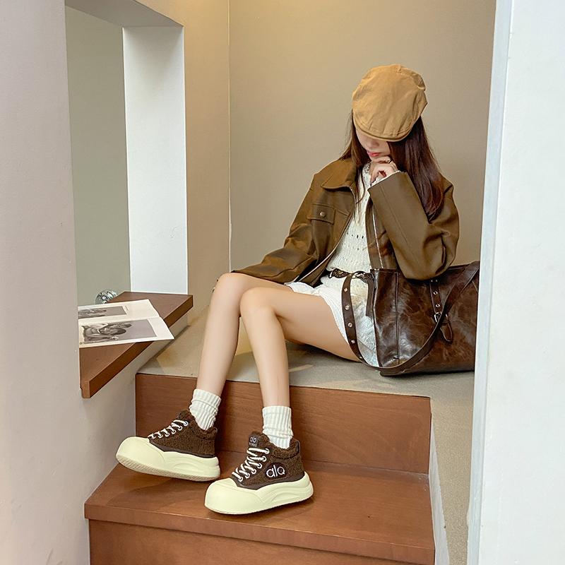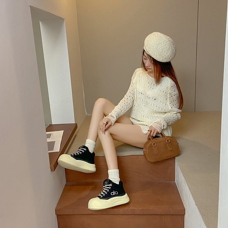 2022春季高帮鞋休闲运动鞋女鞋子单鞋高帮鞋欧美英伦时尚