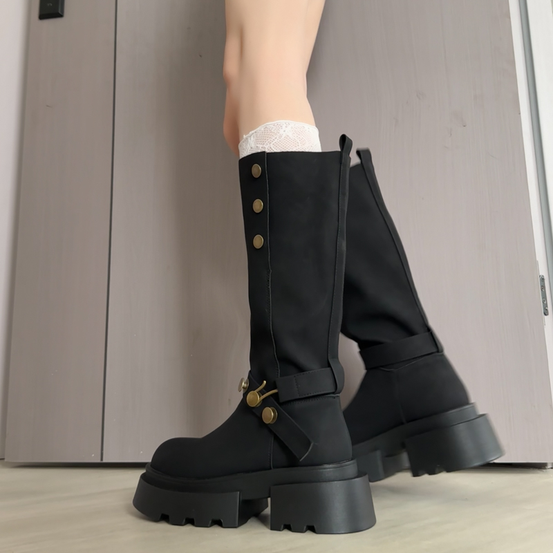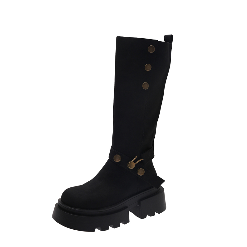 女靴子靴子韩版潮时尚保暖防滑长靴圆头粗跟