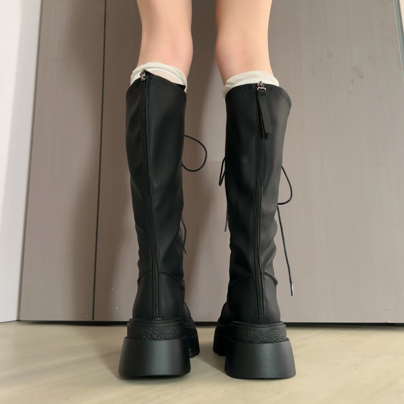 女靴子靴子韩版潮时尚保暖防滑长靴圆头粗跟