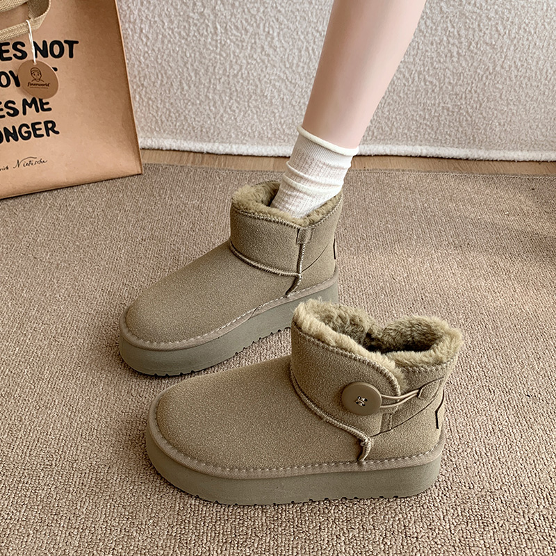 女靴子靴子韩版潮时尚保暖防滑绒面短靴圆头
