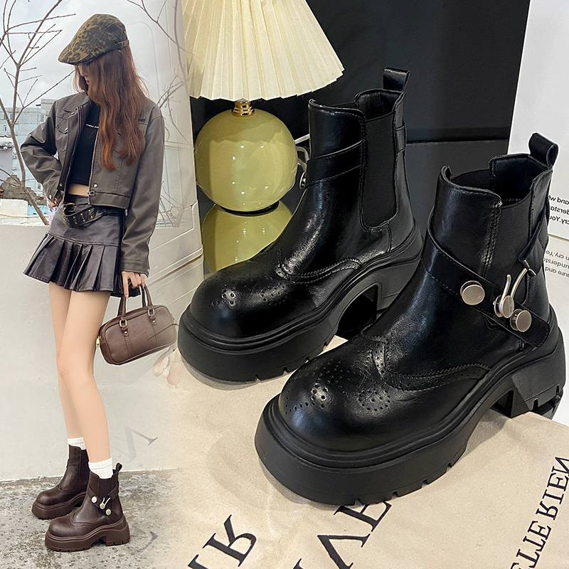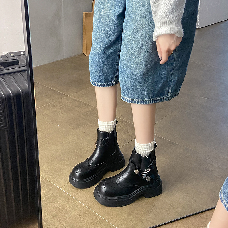 女靴子靴子韩版潮时尚保暖防滑短靴圆头粗跟