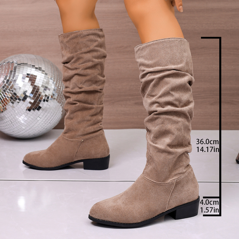 女靴子靴子韩版潮时尚保暖防滑长靴圆头粗跟