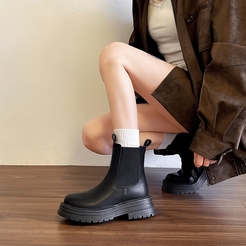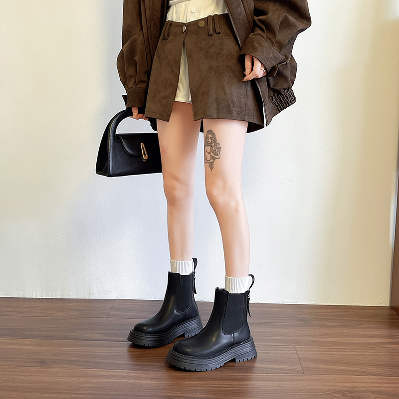 女靴子靴子韩版潮时尚保暖防滑短靴圆头粗跟