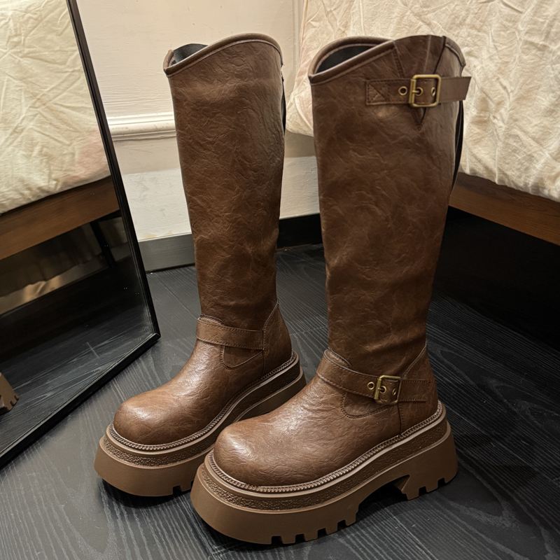 女靴子靴子韩版潮时尚保暖防滑长靴圆头粗跟