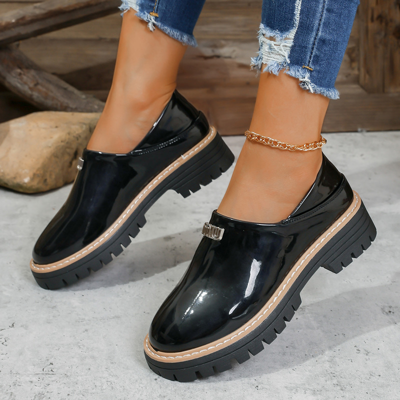 2022春夏季新款单鞋女鞋子低帮鞋韩版时尚学生简约圆头粗跟铆钉