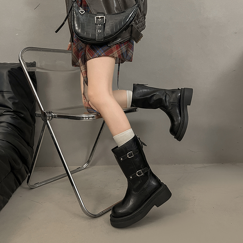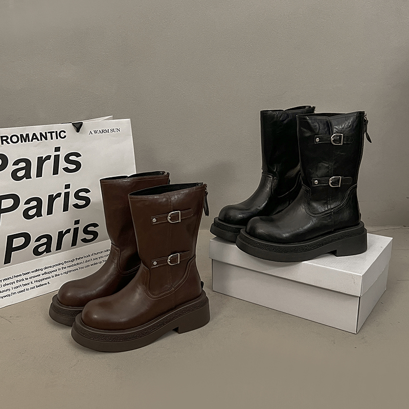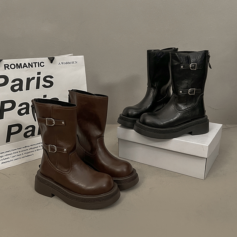 女靴子靴子韩版潮时尚保暖防滑短靴圆头粗跟