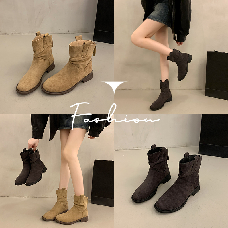 女靴子靴子韩版潮时尚保暖防滑短靴圆头粗跟