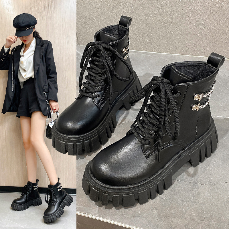 女靴子靴子韩版潮时尚保暖防滑短靴圆头粗跟