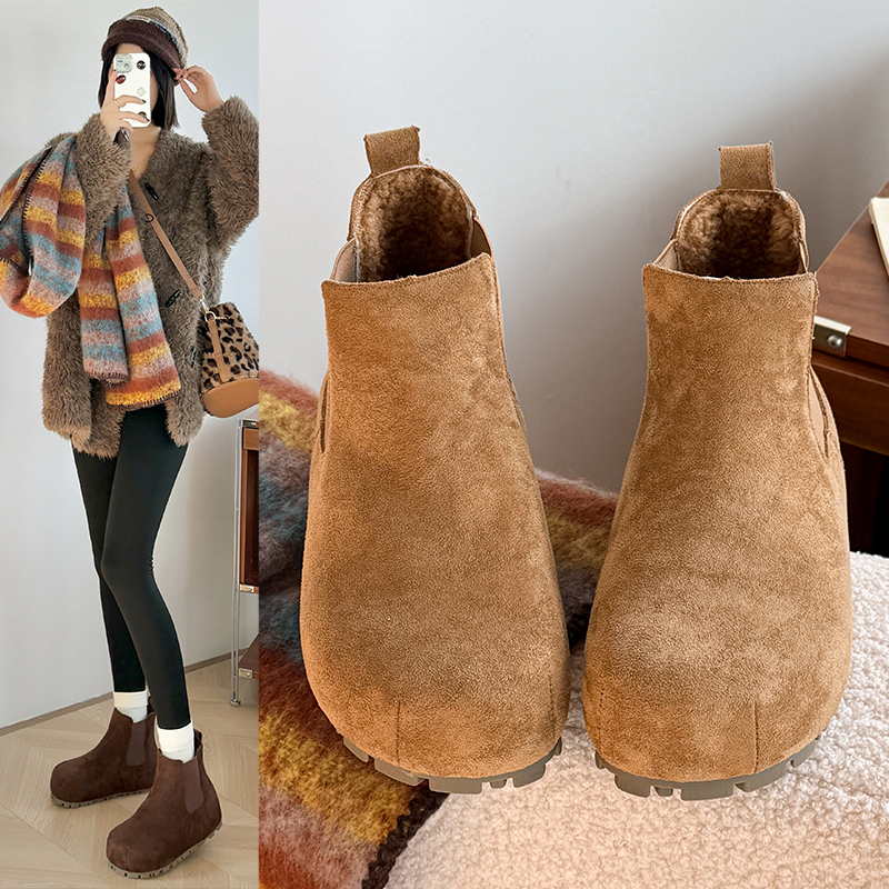 女靴子靴子韩版潮时尚保暖防滑短靴圆头粗跟