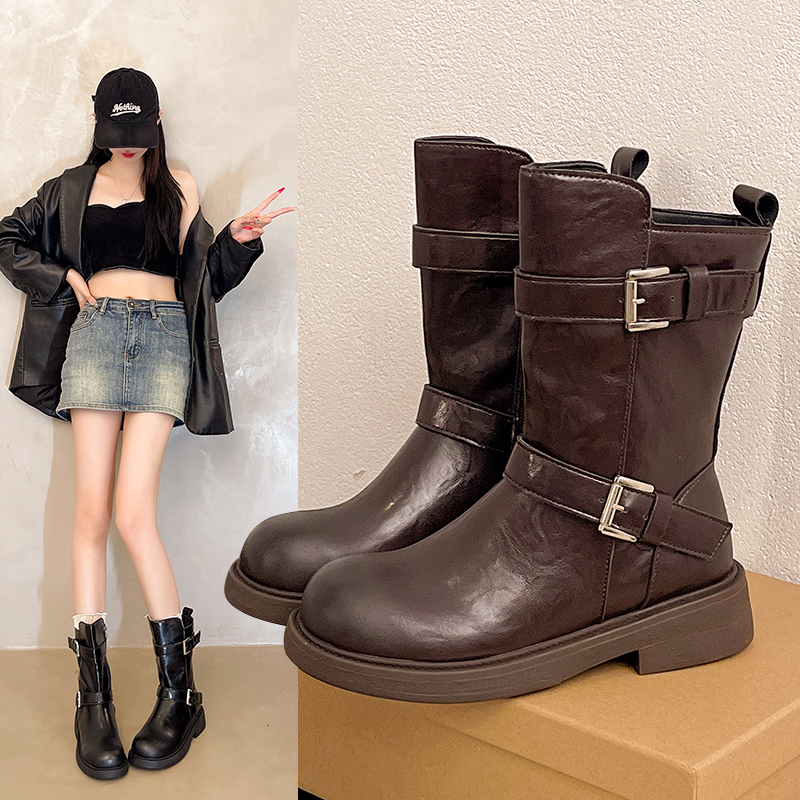 女靴子靴子韩版潮时尚保暖防滑短靴圆头粗跟