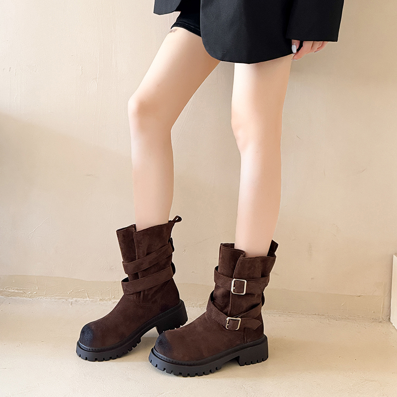 女靴子靴子韩版潮时尚保暖防滑短靴圆头粗跟