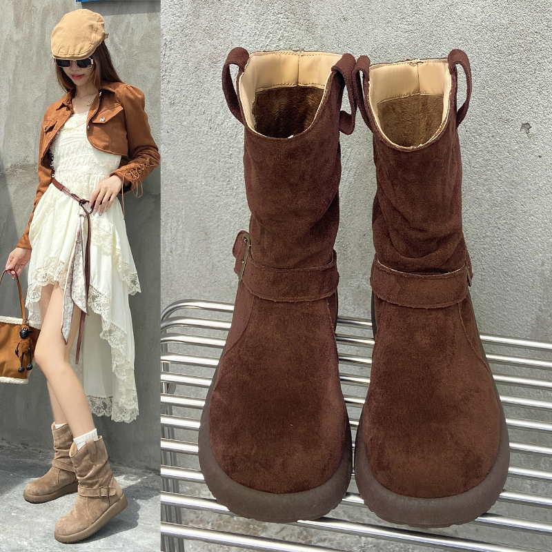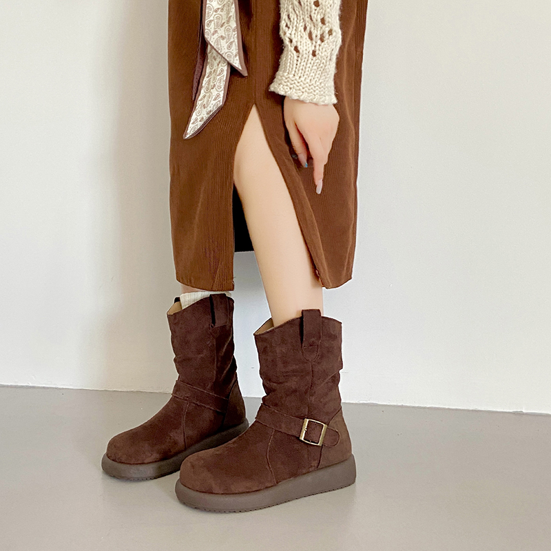 女靴子靴子韩版潮时尚保暖防滑短靴圆头粗跟