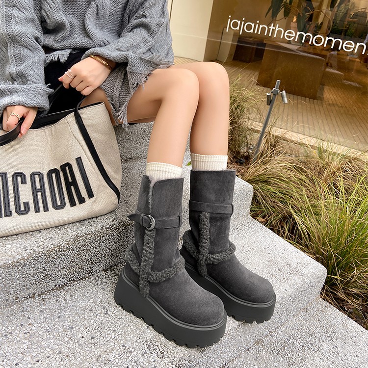 女靴子靴子韩版潮时尚保暖防滑绒面短靴圆头