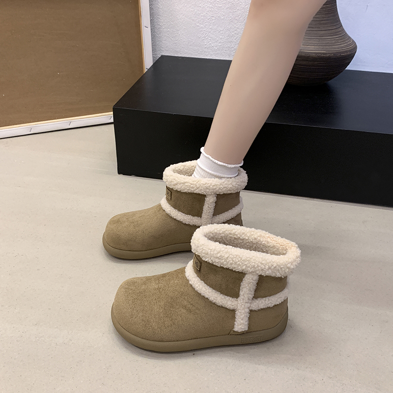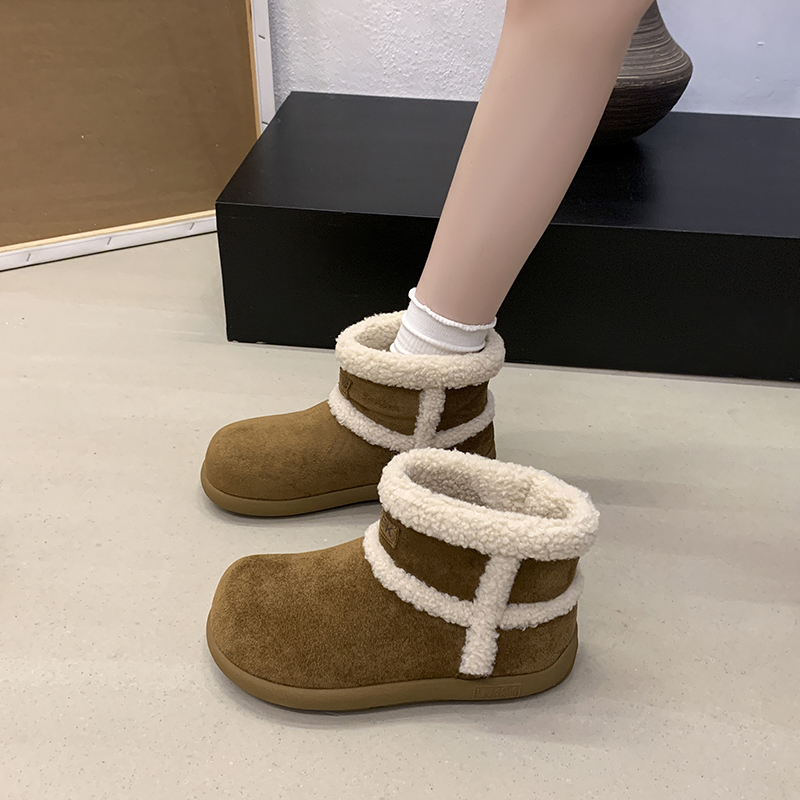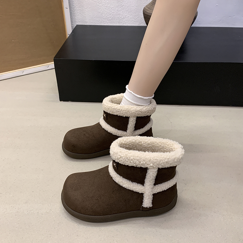 女靴子靴子韩版潮时尚保暖防滑绒面短靴圆头