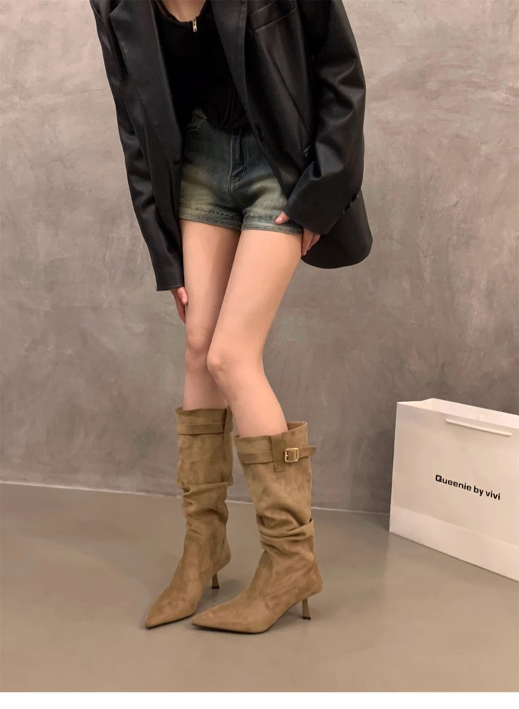 女靴子靴子韩版潮时尚保暖防滑长靴圆头粗跟