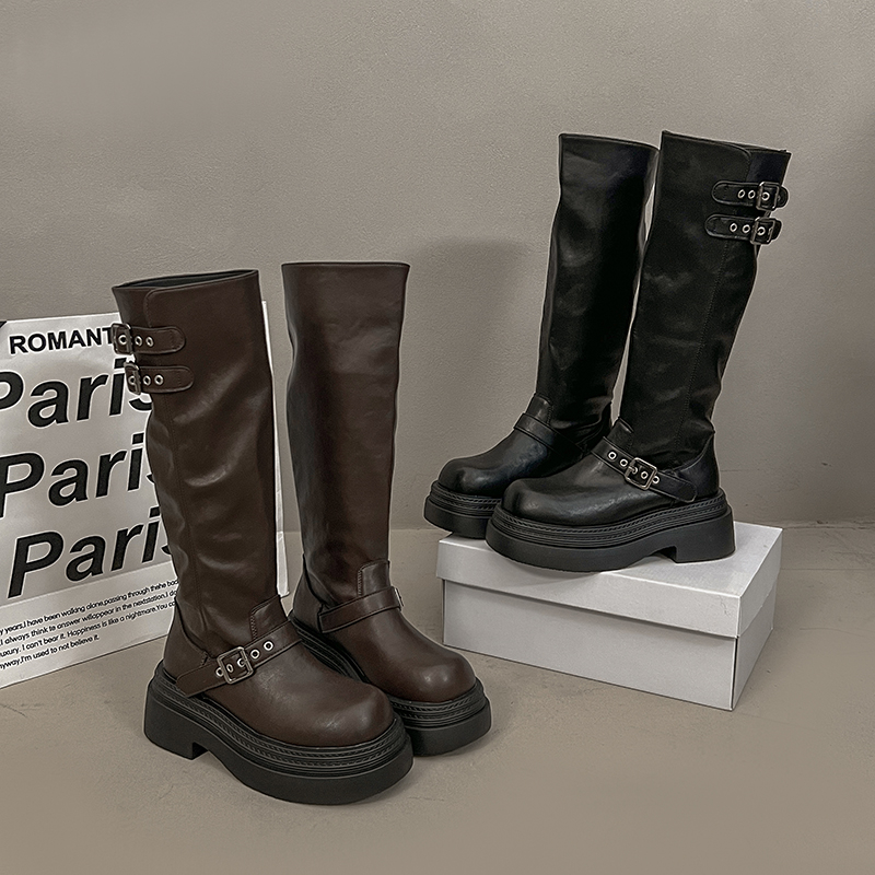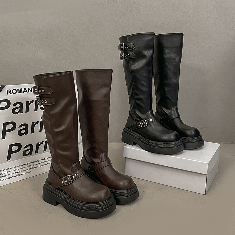 女靴子靴子韩版潮时尚保暖防滑长靴圆头粗跟