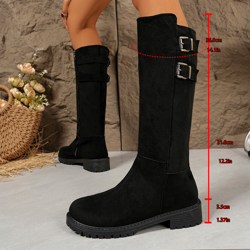 女靴子靴子韩版潮时尚保暖防滑长靴圆头粗跟