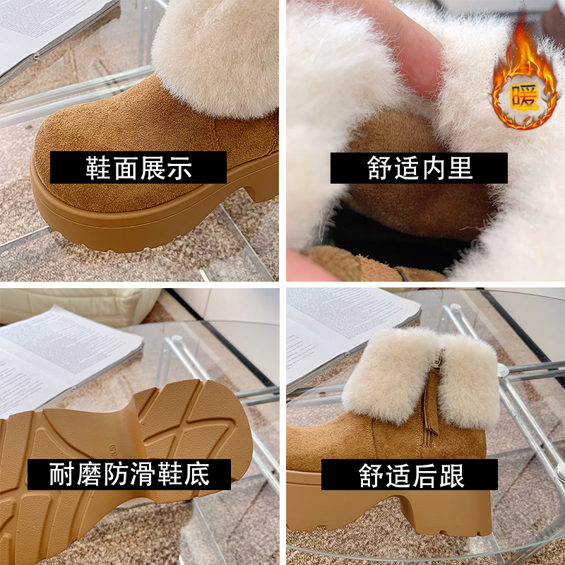 女靴子靴子韩版潮时尚保暖防滑绒面短靴圆头
