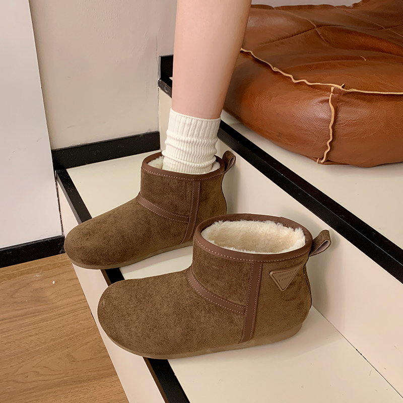 女靴子靴子韩版潮时尚保暖防滑绒面短靴圆头