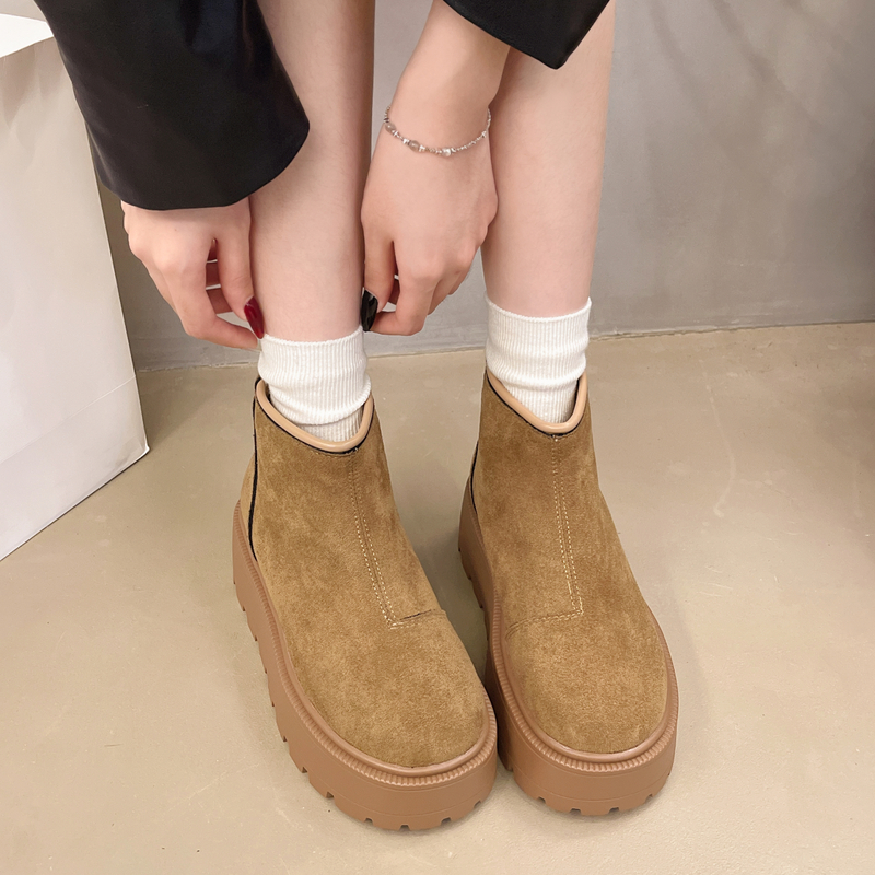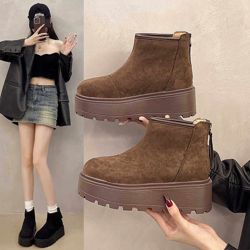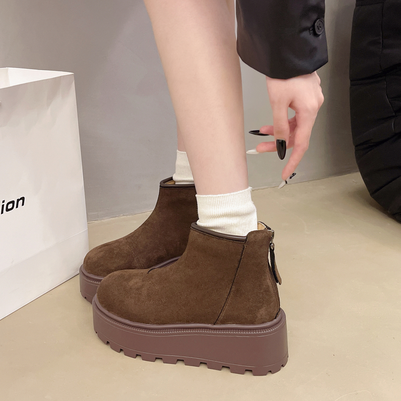 女靴子靴子韩版潮时尚保暖防滑绒面短靴圆头