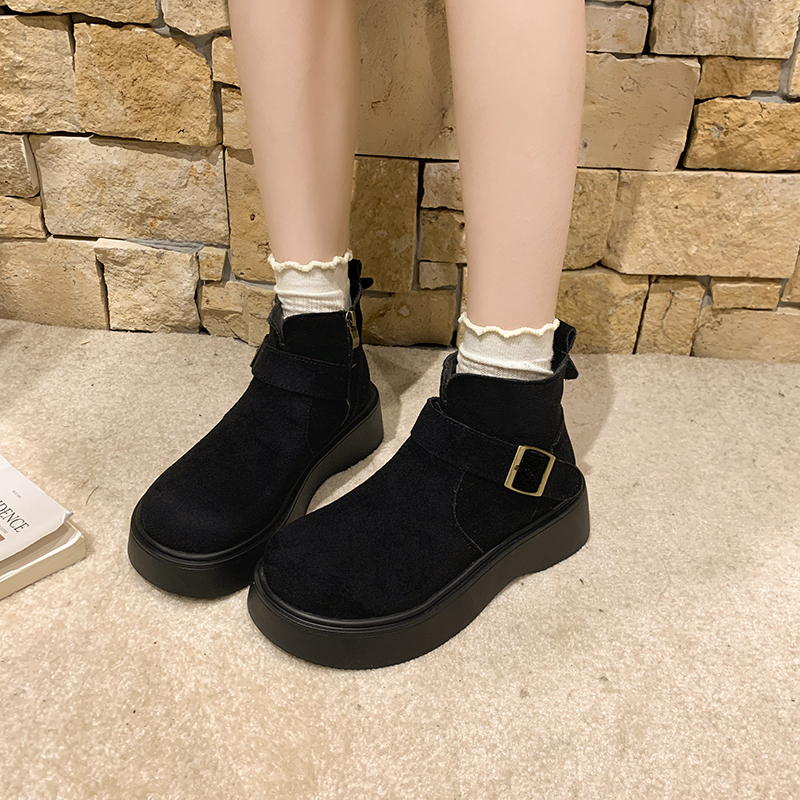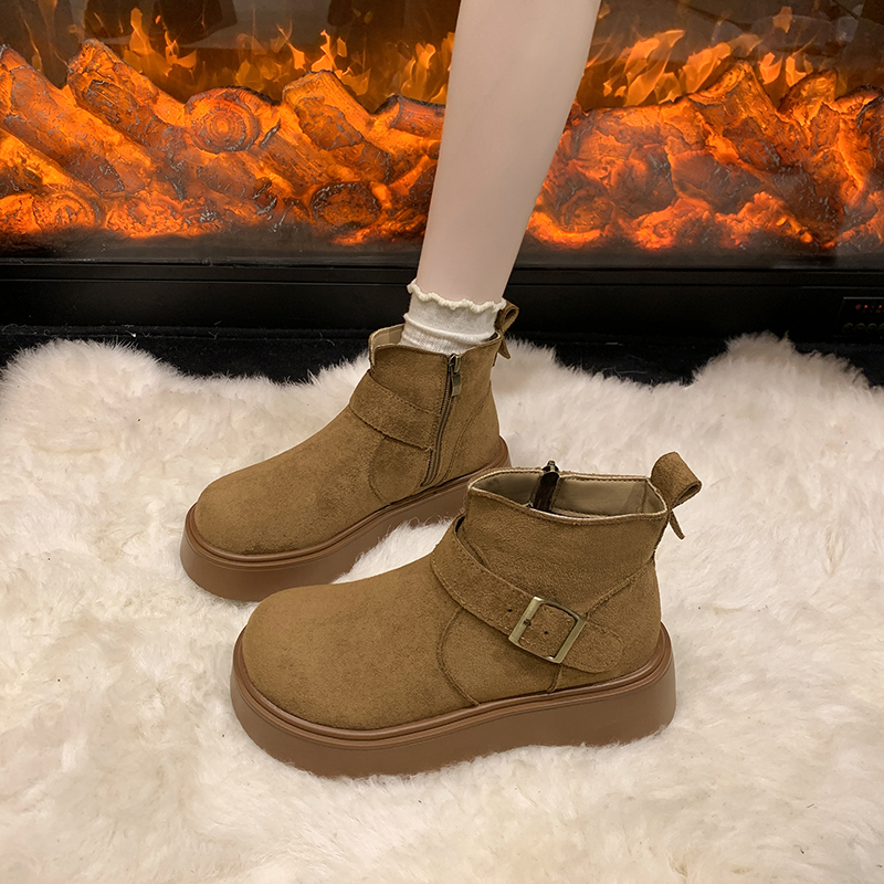 女靴子靴子韩版潮时尚保暖防滑短靴圆头粗跟