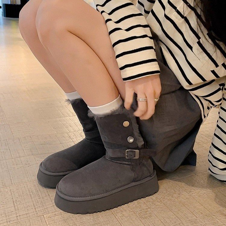 女靴子靴子韩版潮时尚保暖防滑绒面短靴圆头