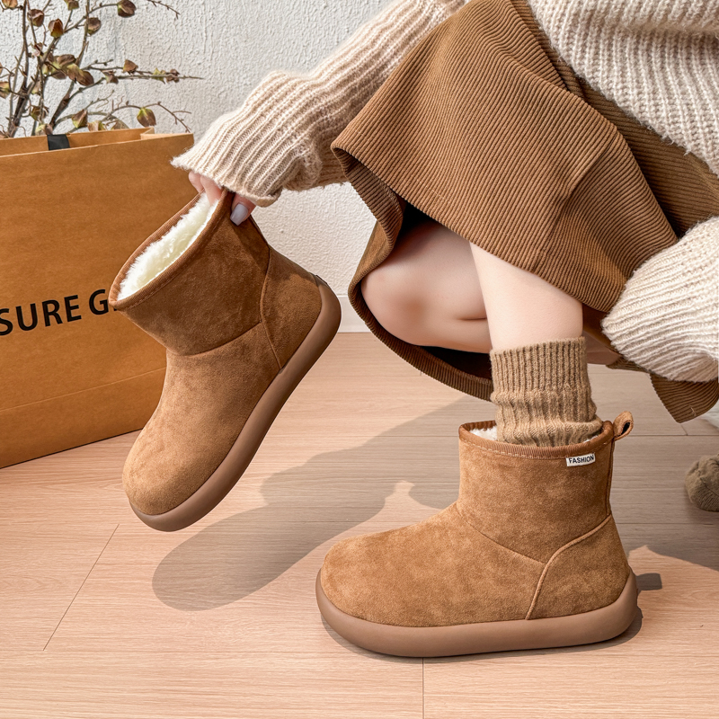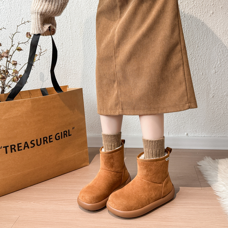 女靴子靴子韩版潮时尚保暖防滑绒面短靴圆头